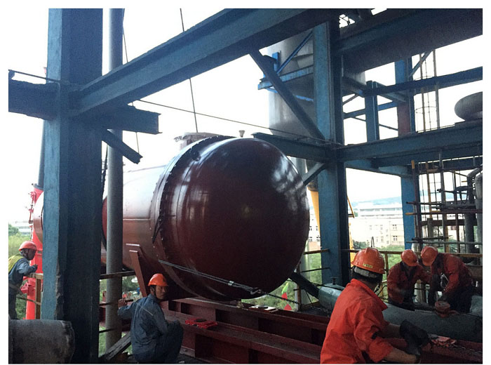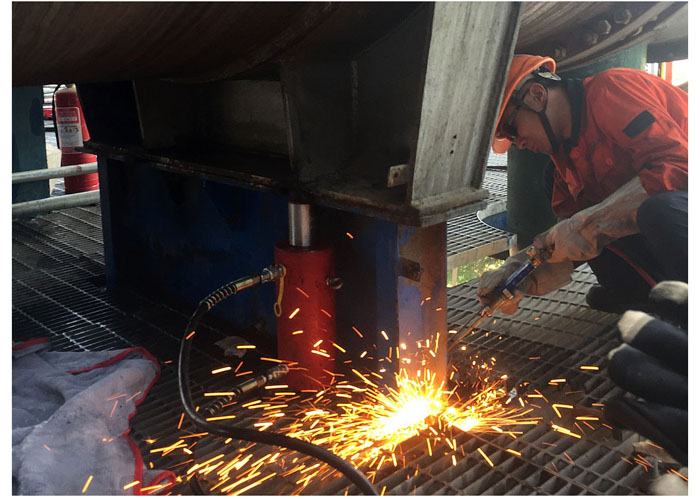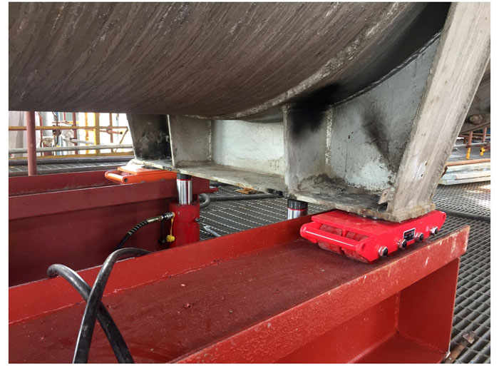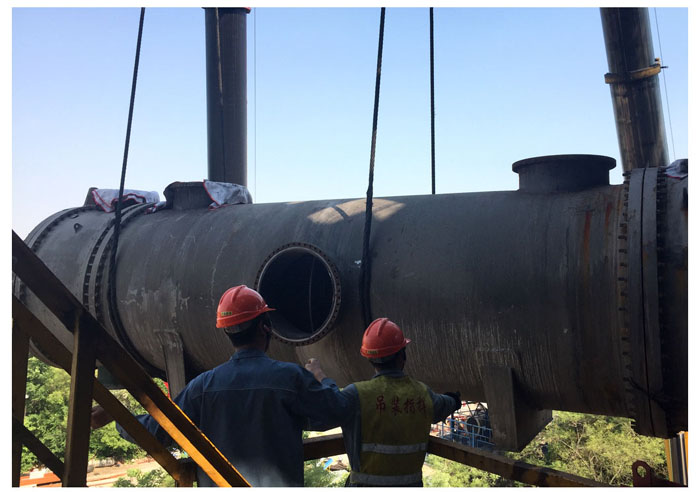 四年一次的齊魯石化大修改造檢修現(xiàn)場如火如荼。塑料廠苯乙烯裝置重達46噸的E306換熱器設(shè)備更新,要求將原E-306換熱器設(shè)備從三層平臺內(nèi)拆除導出,再將新設(shè)備更換到位,這是該裝置建成以來第一次整體更換次換熱器。由于吊裝作業(yè)空間狹小,上端沒有承重梁,采用常規(guī)的6臺10噸倒鏈、滾杠移位,上部加設(shè)承重梁,施工時間長,作業(yè)風險大。為此,公司起重運輸中心提前設(shè)計制作了11米的軌道專用工裝,專門購置了4臺12噸坦克運輸車和4個油壓千斤頂?shù)葘I(yè)工具,利用新技術(shù)打好突擊戰(zhàn)。在一下午的突擊中,起重三班青年員工張士軍帶領(lǐng)6名“突擊隊員”密切協(xié)作,規(guī)范作業(yè),由260噸和160噸兩臺吊車共同將舊設(shè)備順利“抬至”地面,并將新設(shè)備準確“抬進”預設(shè)軌道。采用該新技術(shù),不僅節(jié)約了1倍作業(yè)時間和三分之一的人工,而且整個吊裝過程達到了安全受控,受到業(yè)主的高度稱贊。