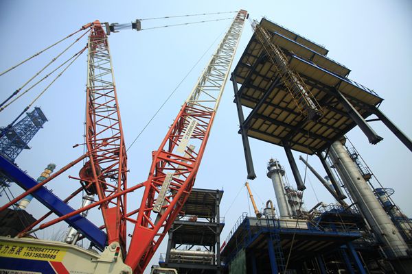 四年一次的齊魯石化大檢修正激戰猶酣。齊魯建設作為主力軍承擔了煉油廠、烯烴廠等8個生產廠34套生產裝置、5200多項檢修改造任務,承擔的吊裝施工作業占大修改造總吊裝任務的85%以上。多區域多裝置同步作業,共投入了650噸、500噸、260噸、160噸等各類大型吊車70余臺,為歷次大檢修之最。